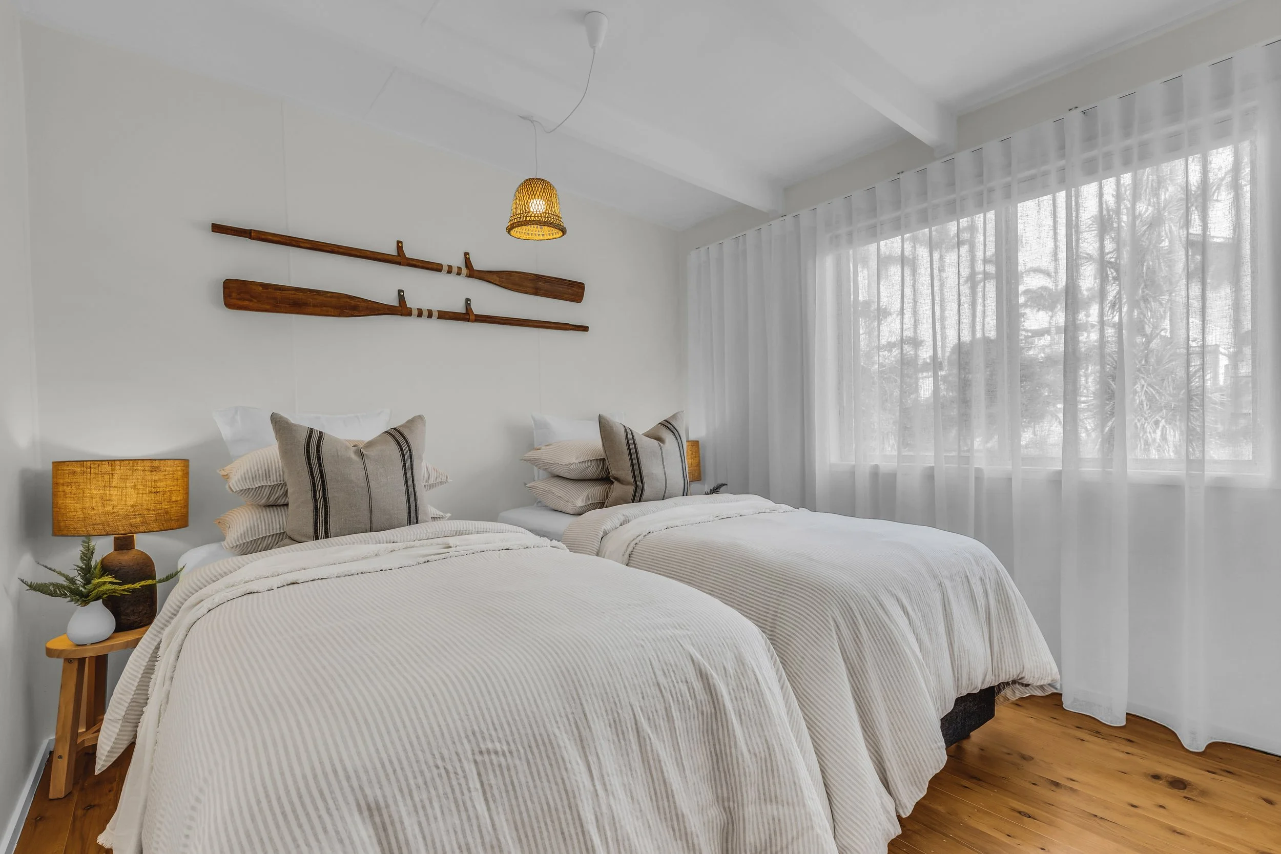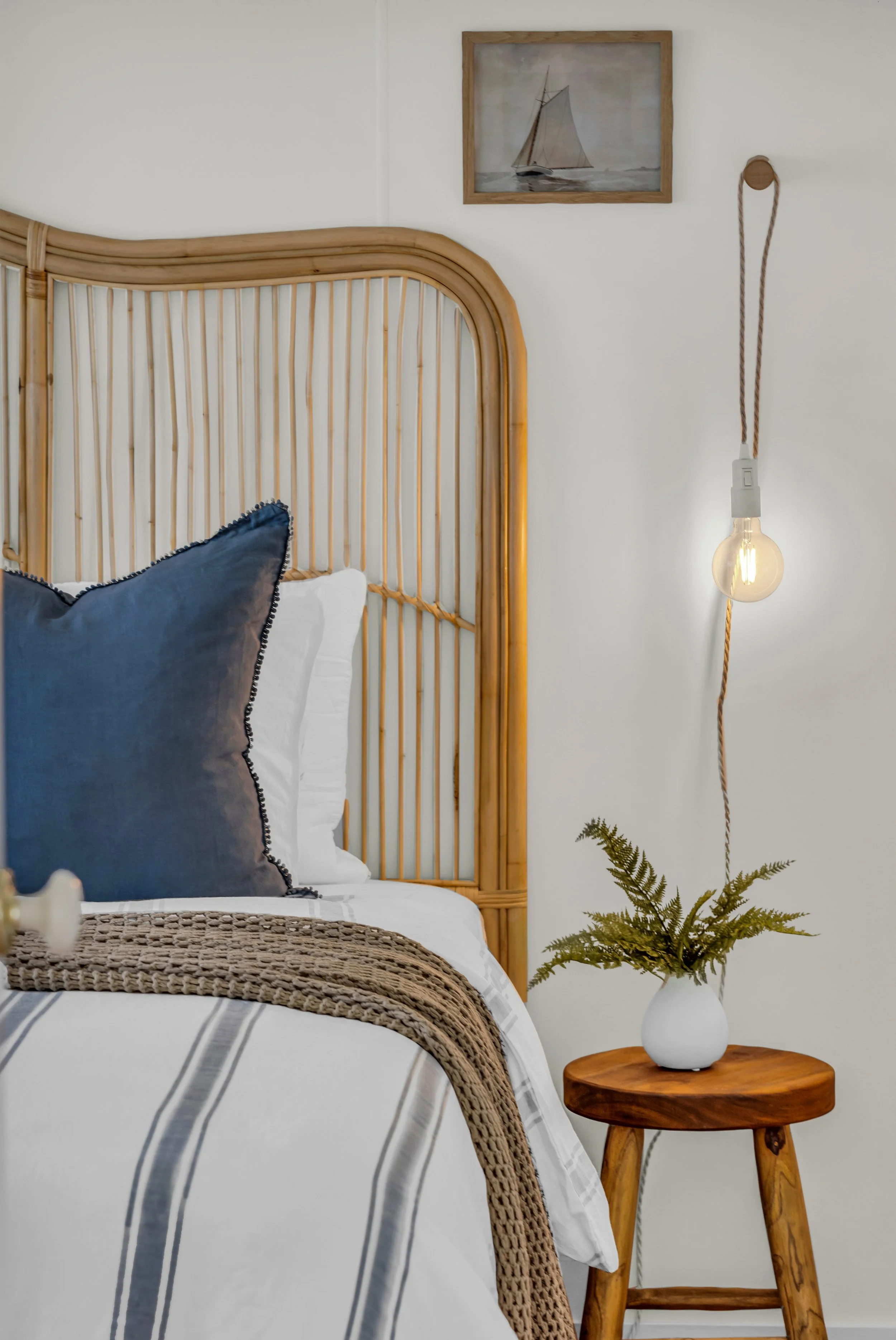 High Noon, a holiday rental on the Sapphire Coast, styled by Right At Home Staging and named after the owners’ grandfather’s fishing boat, features our luxe Sheer Curtains and Roller Blinds.