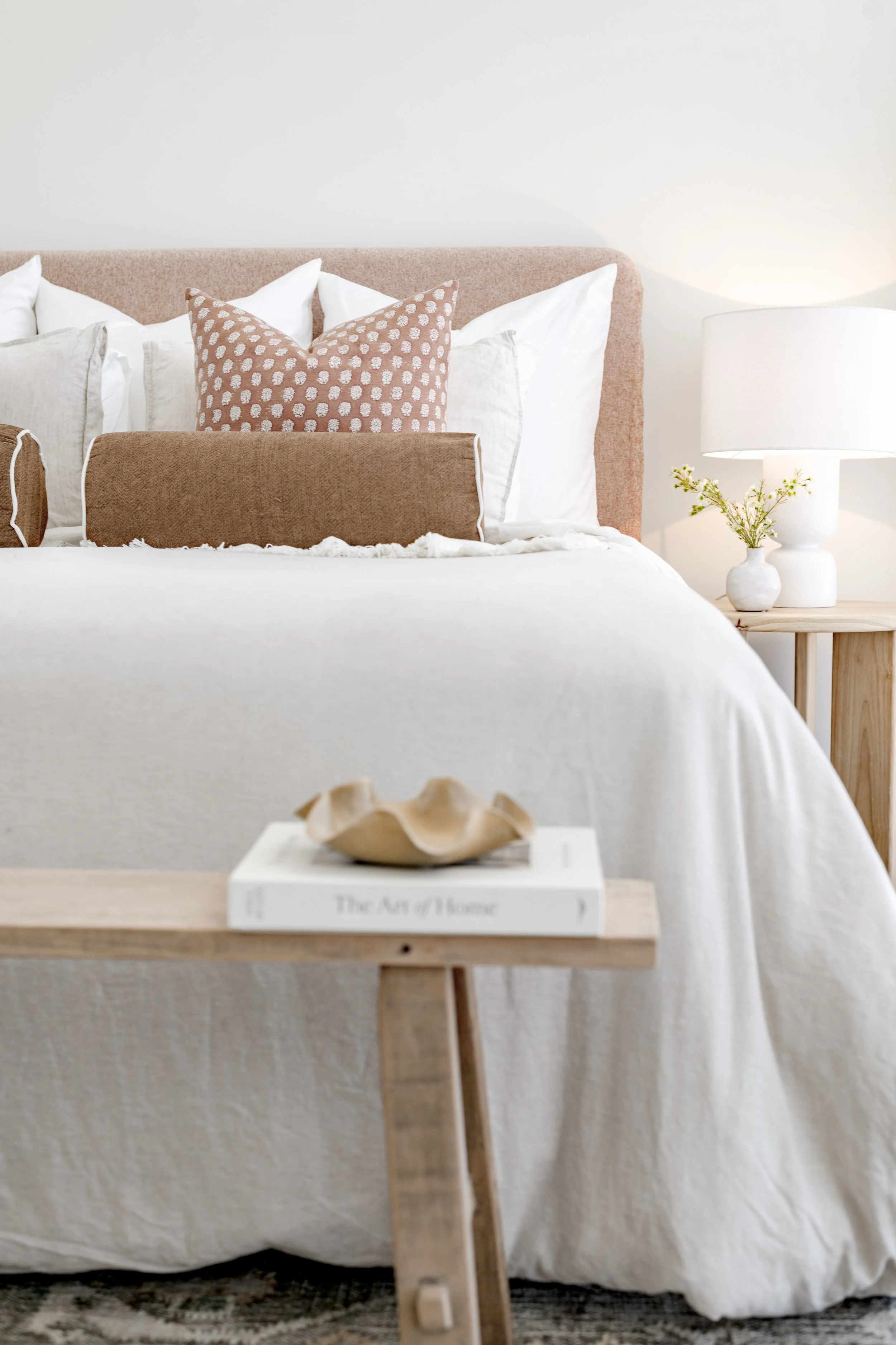 Upstairs, the bedrooms were styled to evoke a sense of retreat.